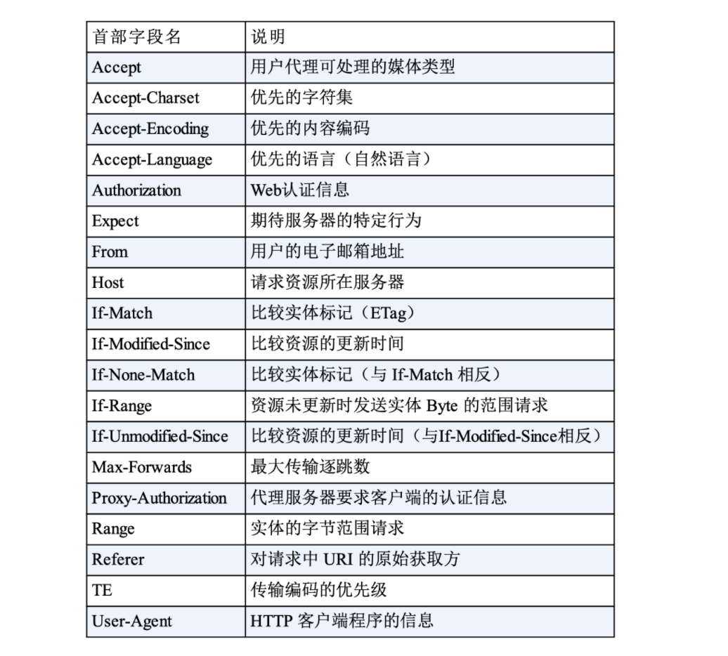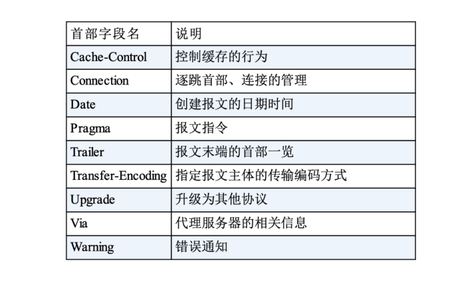 下面列举了 HTTP/1.1 中的逐跳首部字段。除这 8 个首部字段之外,其他所有字段都属于端到端首部。