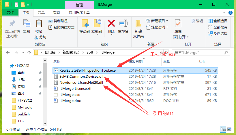 6、下面是主程序的exe以及引用的第三方类库dll,(复制到ILMerge目录下,方便演示)