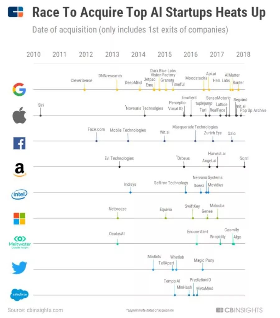 一旦遇见有前景的startup,科技巨头就会将其买下,生怕关键技术花落他家。