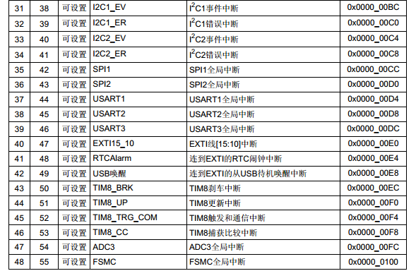 1、使能某个外设中断,这个具体由每个外设的相关中断使能位控制。参照中断向量表配置。