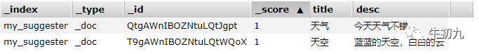 "_source": { "title": "天气","desc": "今天天气不错","suggest": { "input": "天气"}}