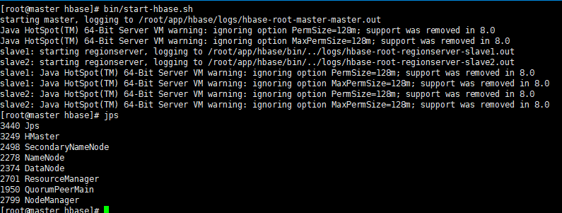 6.启动hbase(保证zookeeper和Hadoop已经启动)