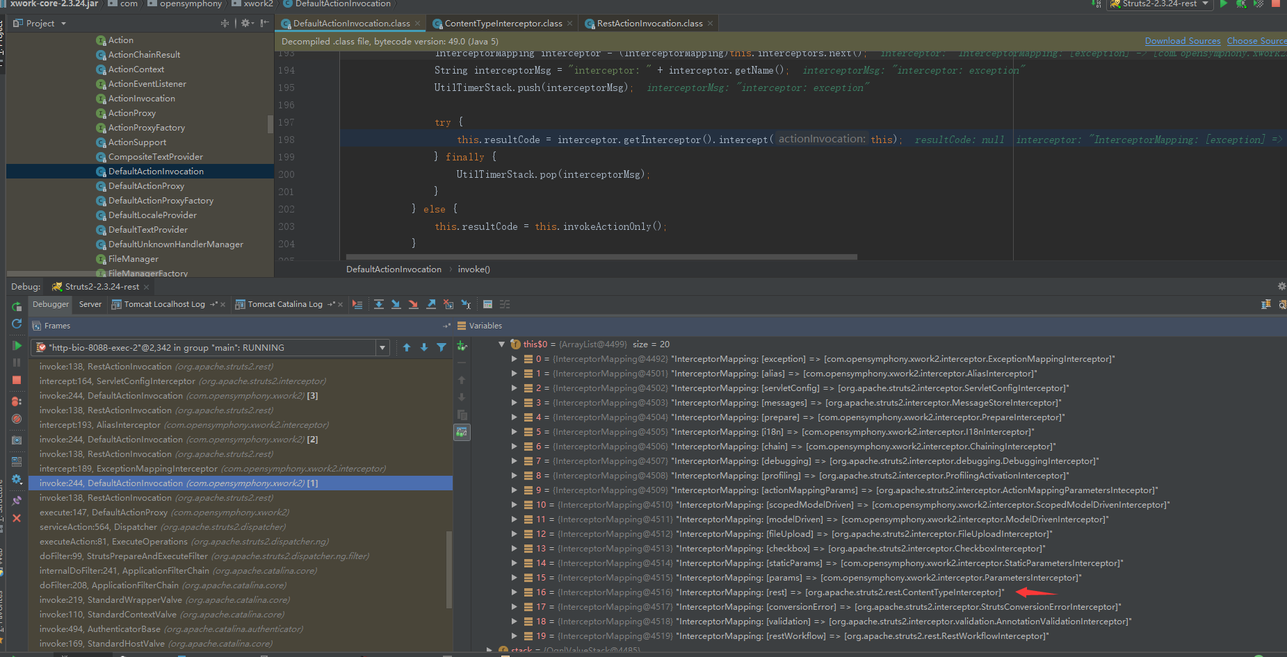 这次的漏洞就出现在ContentTypeInterceptor中,debug进去看看: