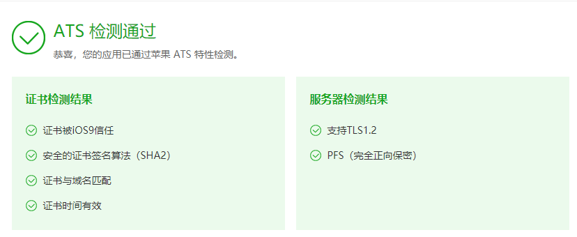 输入域名,通过苹果ATS检测发现临时服务器并不支持TSL1.2,不满足ATS特性,所以需要配置服务器,打开TSL1.2