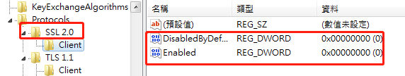 4 [HKEY_LOCAL_MACHINE\SYSTEM\CurrentControlSet\Control\SecurityProviders\SCHANNEL\Protocols\SSL 2.0\Client]