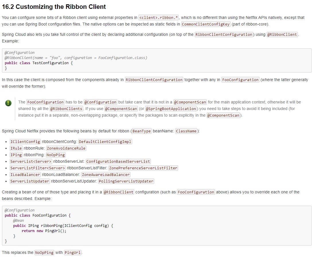 这部分在Spring Cloud官方reference中有说明 16.2 Customizing the Ribbon Client