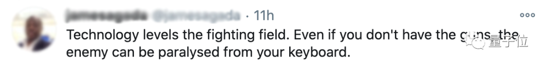 有网友看后感叹,科技升级了战场,哪怕没有枪,靠键盘就能将对手麻痹。(嗯…你指哪方面?)