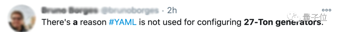 此外,也有网友调侃,YAML不能被用于配置27吨发电机的原因找到了。