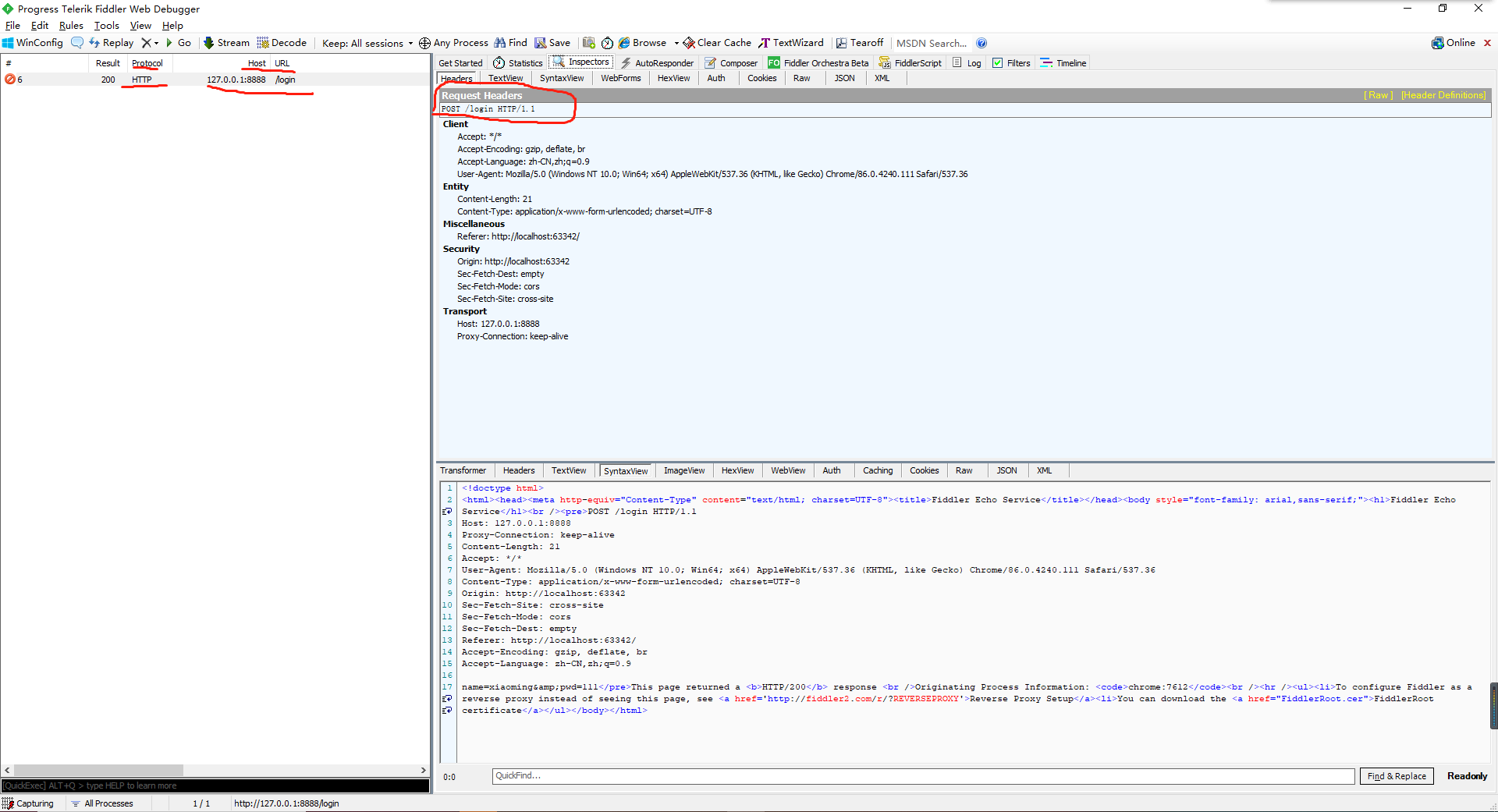 这是一个简单的登录请求被fiddler抓取到的信息,我们可以用到的分别是: