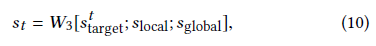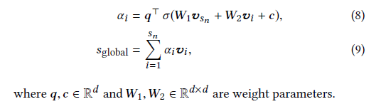 首先引入局部目标注意力模块计算会话s中所有item的注意力分数。一个非线性转换通过一个权重W参数话,W用于每个节点-目标对。采用softmax对self-attention分数norm