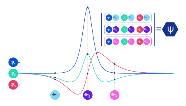 物理学家也是这样想的,他们用所谓“Slater行列式”来表示电子波函数,但实际情况比Slater行列式要复杂得多,为了更精确表示电子行为,往往需要几百万个Slater行列式的线性组合。