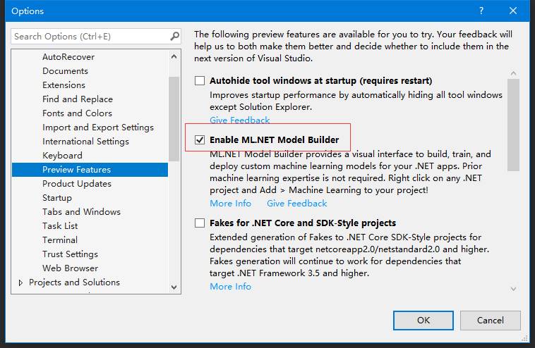 从这里我们也可以看出,微软已经计划在后续的visual studio中将ML.NET作为默认工具集成进来了。