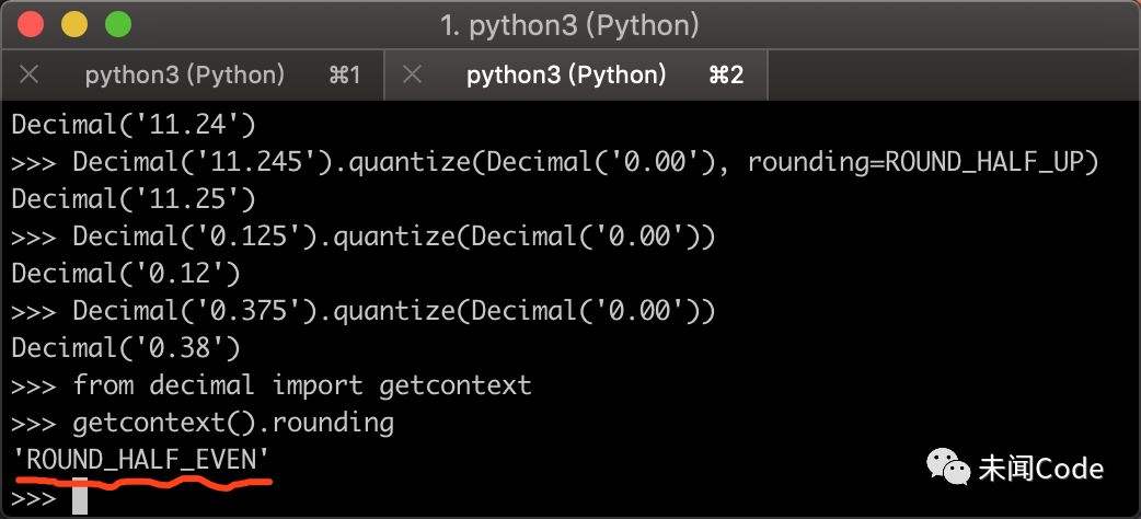 ROUND_HALF_EVEN实际上就是 奇进偶舍!如果要指定真正的四舍五入,那么我们需要在 quantize中指定进位方式为 ROUND_HALF_UP: