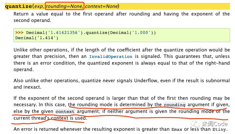 我们来看一下:https://docs.python.org/zh-cn/3/library/decimal.html#decimal.Decimal.quantize