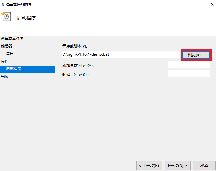 4. 把上述vb脚本demo.bat按照以下步骤添加到windows任务计划中