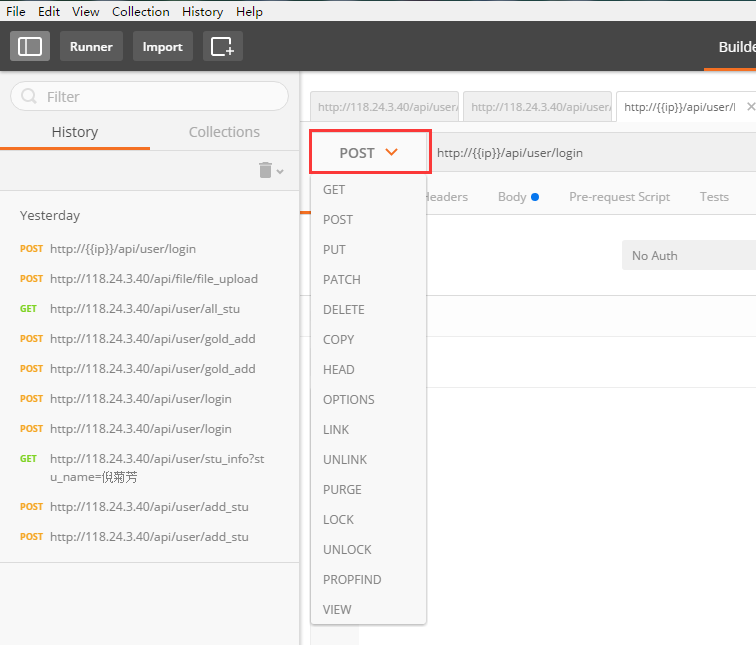 1)根据接口文档确定接口的类型是post还是get,先选择接口的类型