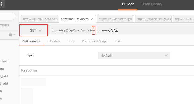 get类型的接口在测试是,当然首先是降接口类型选择为GET,然后直接输入接口地址,在地址后加?后面添加参数和对应的值,多个参数之间用&分开,然后直接运行即可