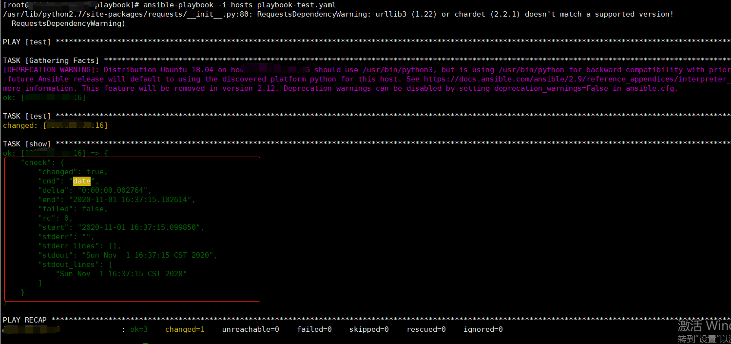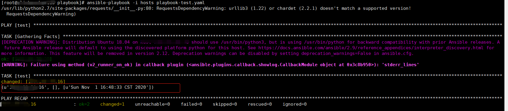 使用ansible-playbook批量执行工具,但发现ansible能返回显示执行结果,ansible-playbook只会返回ok/change/fail,对于需要检查返回结果就还要到机器上二次确认,比较麻烦。所以研究了下ansible-playbook结果回显的方法。