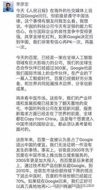 以上看法,巨头老板们肯定不服气,例如李彦宏就对谷歌返华发表了自己的见解: