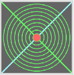 (cX,cY) = wrap.shape[1]//2,wrap.shape[0]//2 for i in range(0,140,15): cv2.circle(wrap,(cX,cY),i,green,2) cv2.circle(wrap,(cX,cY),15,(255,0,0),-1) show(wrap) |
