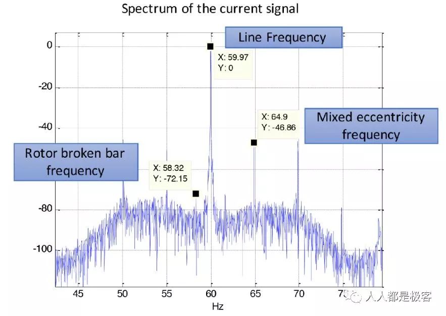 特征提取用于从原始数据(或波形)中导出有用信息以了解资产的健康状况。例如,如图3所示,来自电机的电流信号的频谱中嵌入了可用于检测故障的信息。频谱中不同频带上的平均幅度可用作从当前信号。从多个传感器提取的特征可能具有冗余信息。