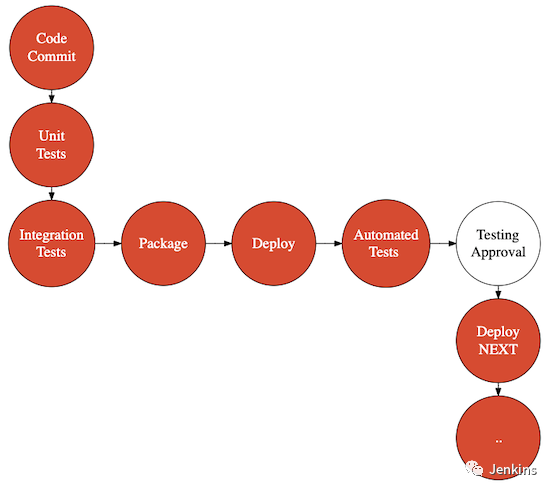 只要开发人员提交代码到版本控制系统,下面的步骤就会被执行:
