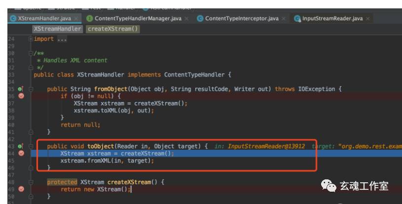第一步:getHandlerForRequest方法会判断提交的请求类型,如果是XML的话就交给XStreamHandler调用toObject方法