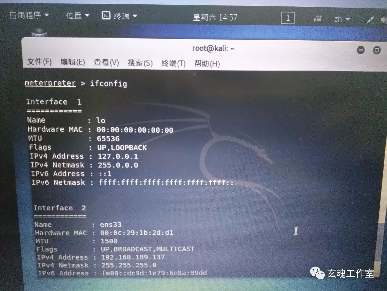 拿到metereter之后,查看下ip,看是否是被攻击机的IP地址。