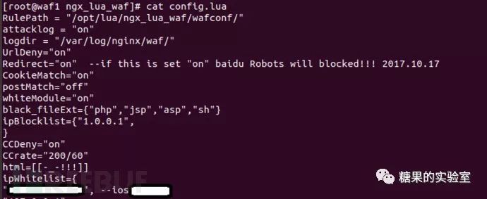 我们的服务有很多都是用nginx、openresy、tengine搭建的,所以用nginx lua做WAF防护也是一件很正常的事, 看看下面的配置就能知道这位朋友用的是那个WAF了吧。