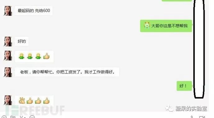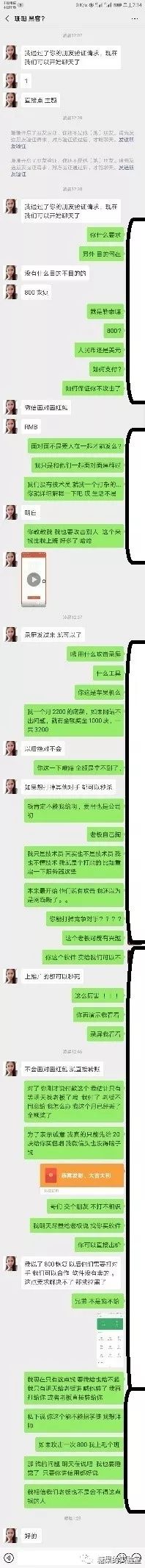 这么长的对话内容,大概的意思是说, 对方要800块钱,并且还能帮助搞其它竞争对手。这位朋友的回答就比较艺术了,没钱,要钱向老板要去。