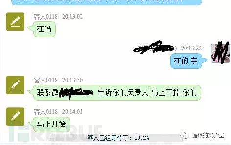 就在这几天,一个朋友传来了他被DDoS的消息,正在搬砖中看到他发的消息,说他们的客服收到到0118号客人的威胁信息,说要马上干掉你们。