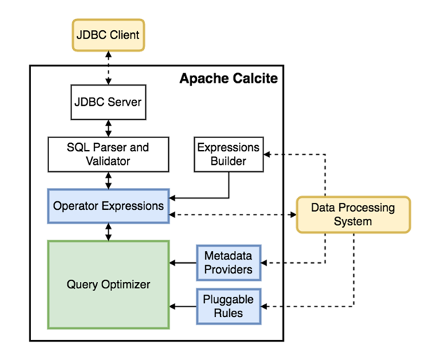Calcite使用Java开发,便于被数据处理引擎集成。
