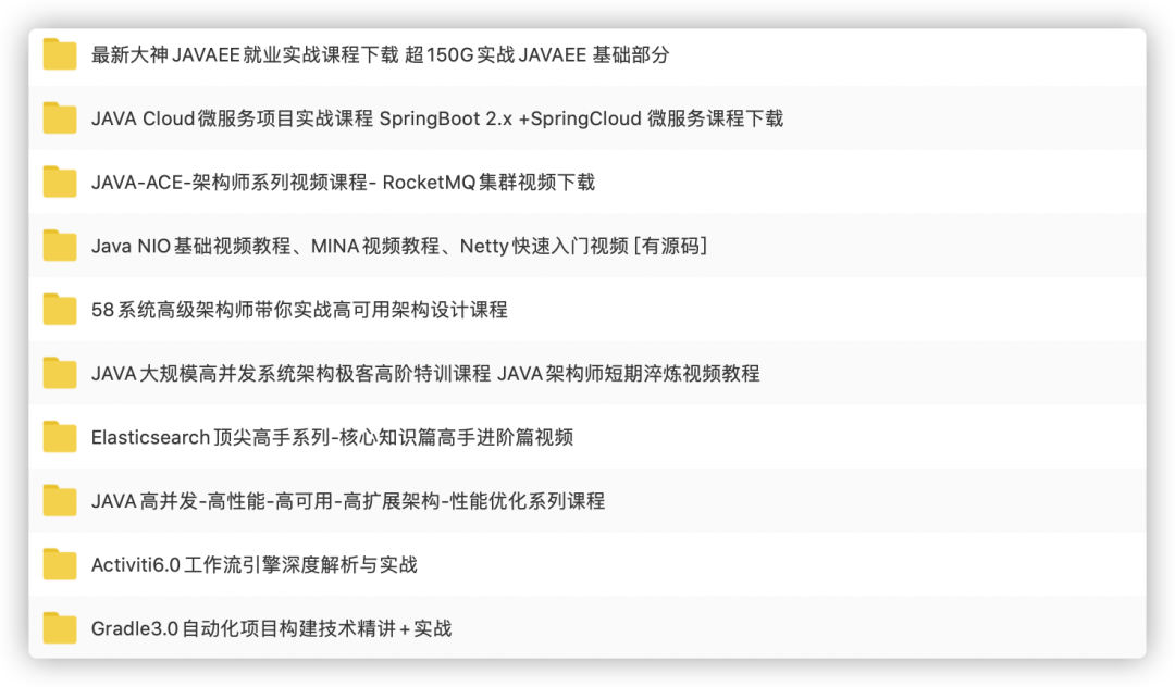 最后免费给大家分享50个Java项目实战资料,涵盖入门、进阶各个阶段学习内容,可以说非常全面了。大部分视频还附带源码,学起来还不费劲!