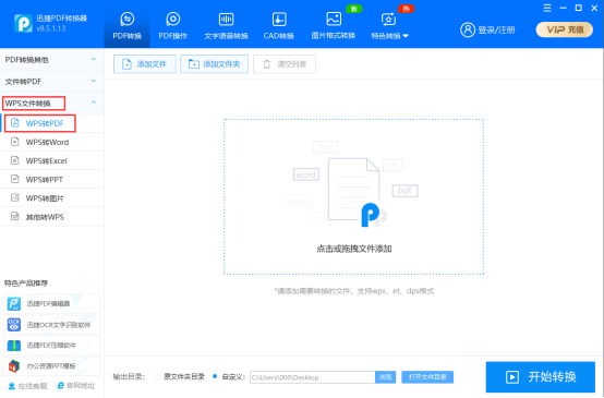 第三步:我们点击左侧栏目中的“wps文件转换”,之后会出现如下的这个界面,我们在选项中选择“wps转ppt”。