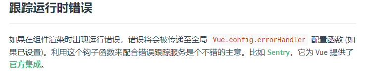 就是说, vue有错误机制处理errorHandler(错误机制处理也有errorCaptured),而Sentry利用这个钩子函数提供了集成。