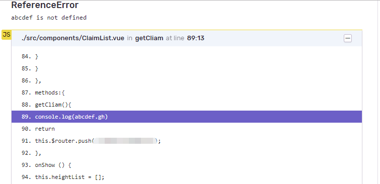 自己随便写个按钮打印个未定义的属性, 比如console.log(abcd.efg)
