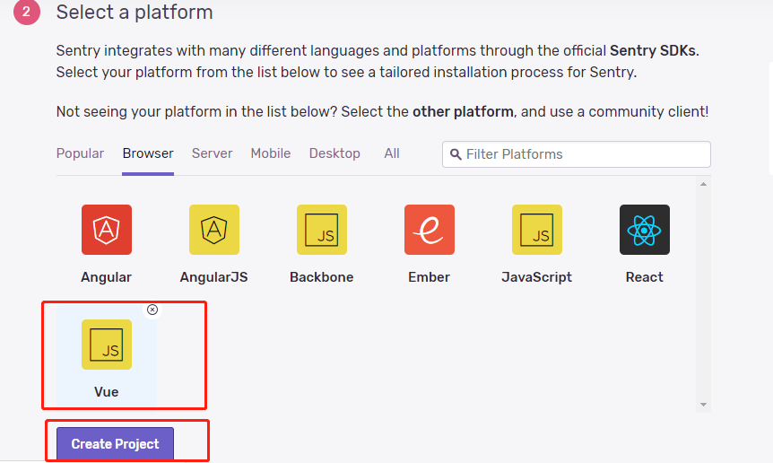 那接下来就是使用了, 首先我们点一下上图中的官方集成四个大字,来到了sentry官方文档(中关于VUE的文档):https://sentry.io/for/vue/。