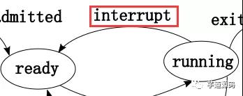 另一方面,所谓的时间分片轮转本质上也是由一个定时器定时中断来驱动的,可以使线程从 running 回到 ready 状态: