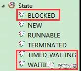现在我们再看一下 Java 中定义的线程状态,嘿,它也有 BLOCKED(阻塞),也有 WAITING(等待),甚至它还更细,还有TIMED_WAITING: