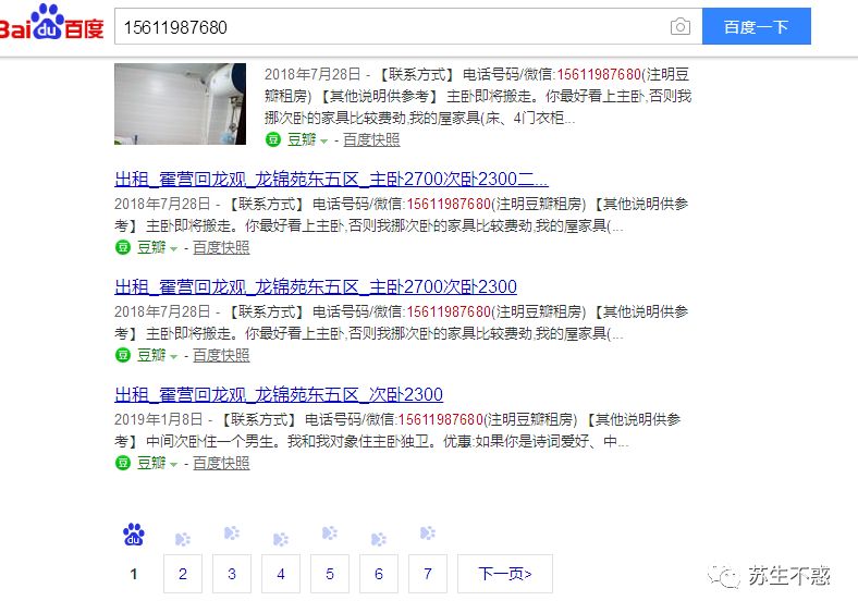 直接搜索对方手机号,有7页搜索记录,不同时间发布那么多租房信息,百分百中介,告辞。