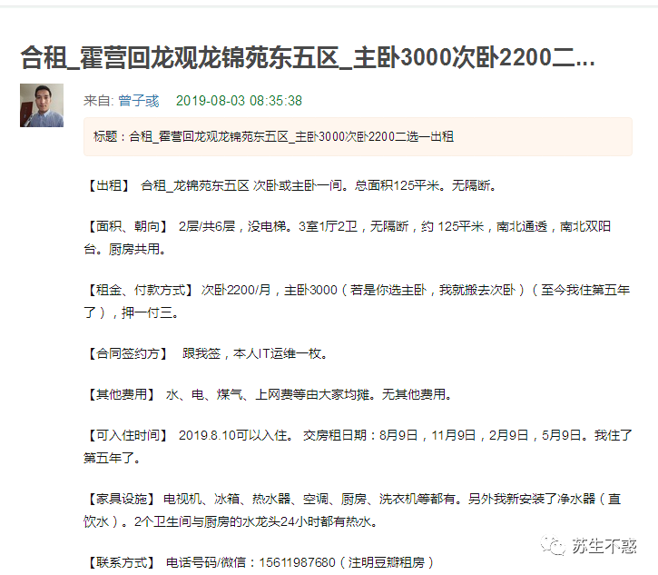 对方没有提供手机号,而是微信,搜索下微信号,发现对方只发过2个豆瓣帖子,可以肯定不是中介。