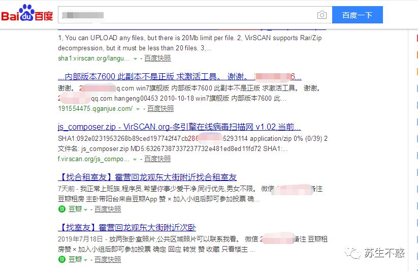搜索对方微信或者手机号,一大堆租房信息,放弃。