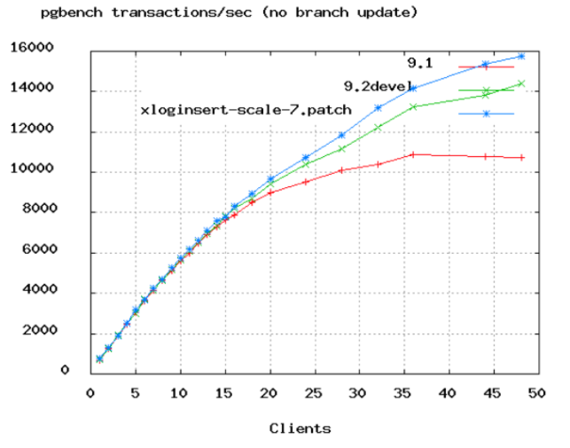 上图是 PostgreSQL 的 benchmark 数据,可以看到 TPS 增长率从 50 个连接数开始变缓。