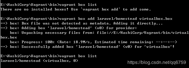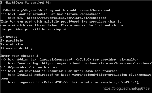 上图中的 box: Downloading: https://vagrantcloud.com/laravel/boxes/homestead/versions/7.1.0/providers/virtualbox.box