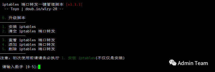 推荐一个一键脚本: wget -N --no-check-certificate https://raw.githubusercontent.com/hugoyue/doubi/master/iptables-pf.sh && chmod +x iptables-pf.sh && bash iptables-pf.sh 执行脚本安装命令