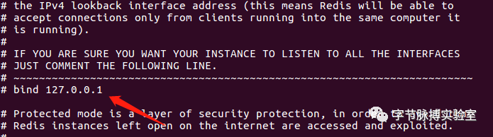 1、在 redis.conf 文件中找到# bind 127.0.0.1,将前面的 # 去掉,然后保存。