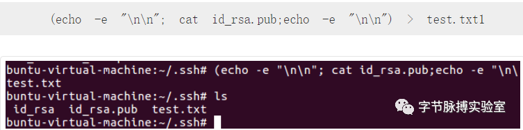 将生成的公钥保存到test.txt,命令如下: