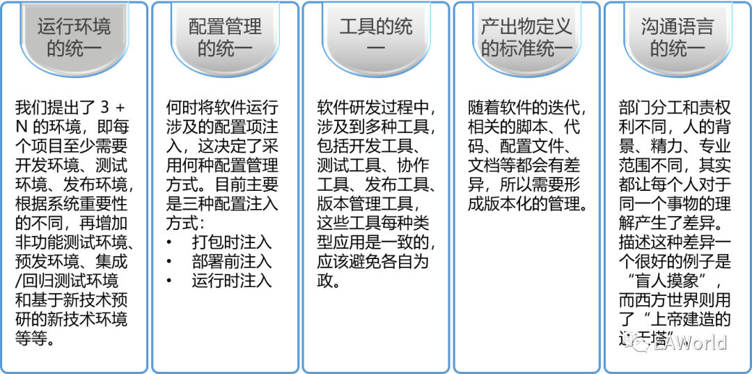 横向端到端的工具链打通、五大环境标准化与资源流转、数字化软件生产线与科技管理各级流程融合、产物及质量门禁标准形成、引领指标形成及精益持续改进,部门间的组织融合