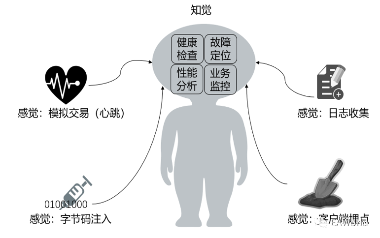 3)字节码注入:注入到服务端代码中,用于感觉后端服务的运行情况。